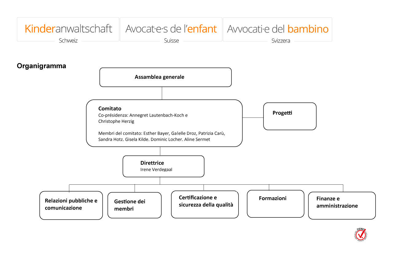 In allegato trovate l’organigramma di Avvocati·e del bambino Svizzera.