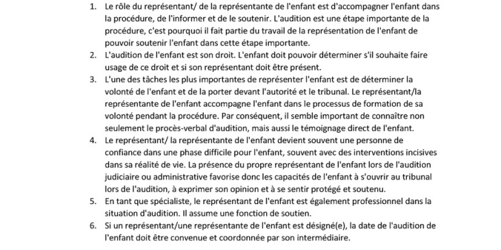 L'audition d'un enfant par le/la juge ou par un membre de l'autorité de l’APEA représente une étape importante de la procédure et constitue un droit légal de l'enfant. Avocat·e·s de l’enfant Suisse considère qu'il est essentiel que le représentant/ la répresentante de l'enfant puisse participer à cette procédure et a adopté une prise de position à ce sujet.